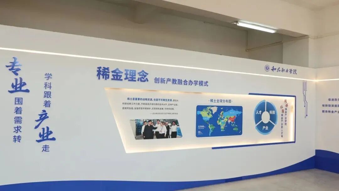 2023年5月19日,由赣县区人民政府、江西理工大学、国家稀土功能材料创新中心与和君职业学院四方共建的中国稀金谷稀金产业学院正式成立。几年来,赣县区始终锚定产业发展需求,以校企协同为抓手,持续深化产教融合,推动人才培养与产业发展同频共振,为区域经济高质量发展筑牢人才根基、注入核心动能。
