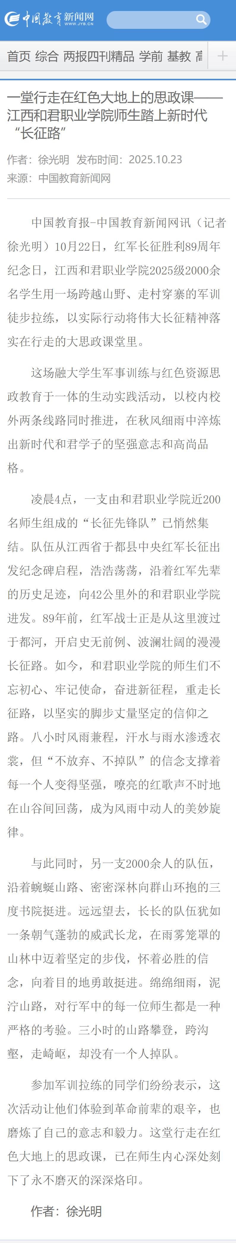 【中国教育报】一堂行走在红色大地上的思政课——江西和君职业学院师生踏上新时代“长征路