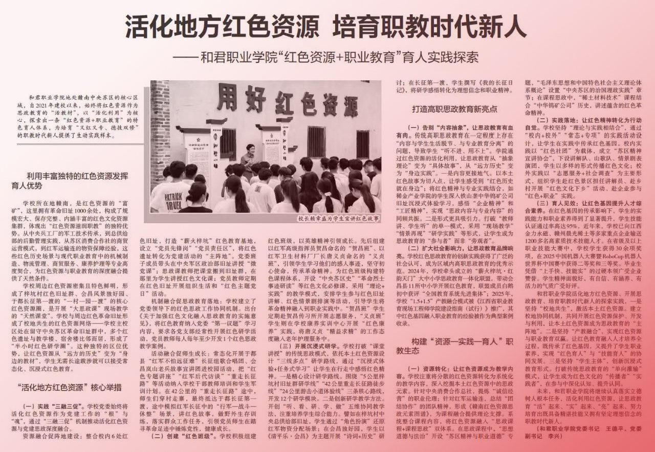【中国教育报】活化地方红色资源 培育职教时代新人——和君职业学院“红色资源+职业教育”育人实践探索