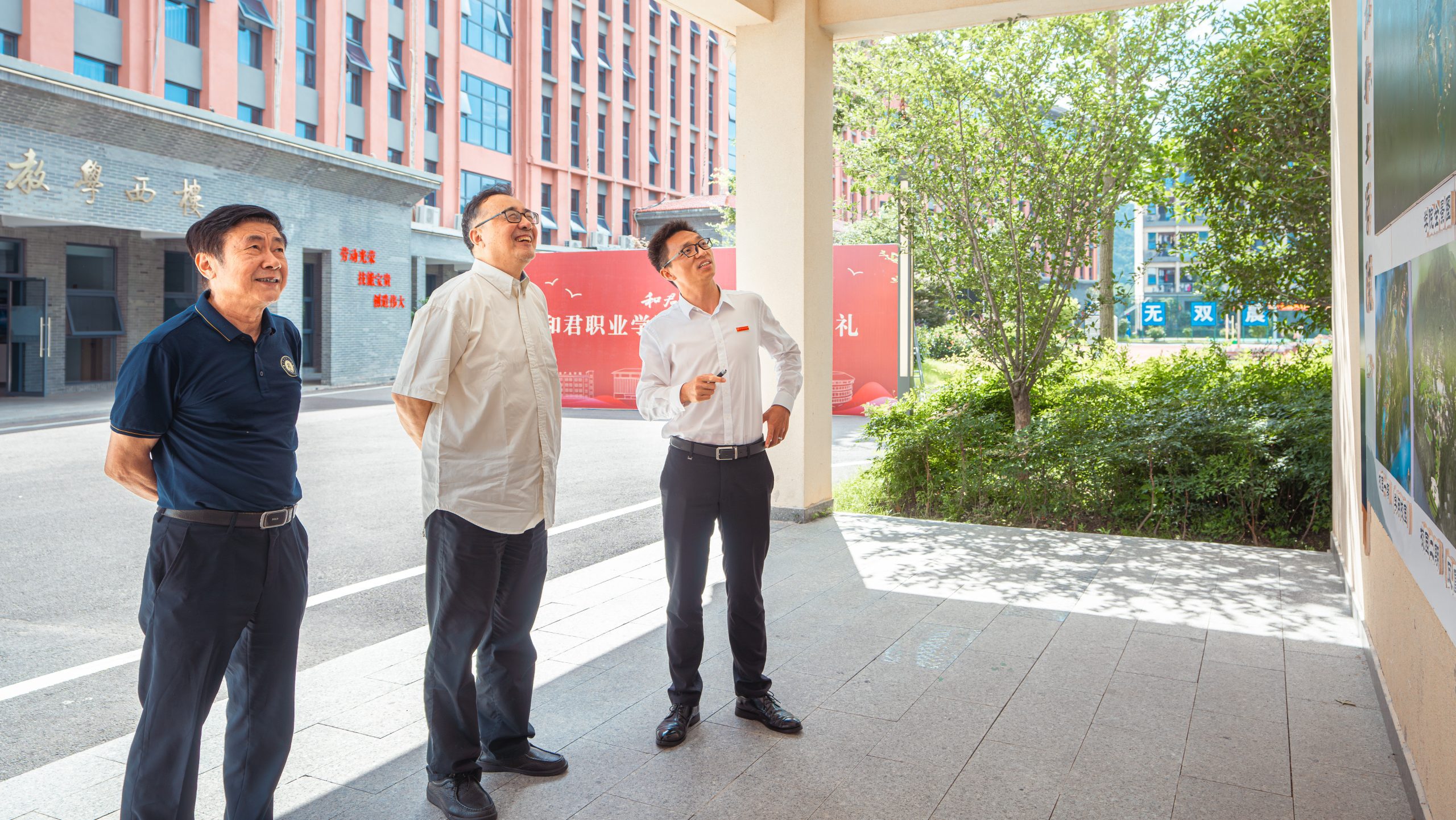 调研过程中,谢维和先后考察了学问校区、骏才校区、和声戏剧技术学院校区、马术中心、红色旧址等教学实训场所,理事长李兴、校长赖章盛陪同调研。通过实地走访和深入交流,谢维和详细了解了我校产教融合办学理念、产业学院建设、稀土高水平专业群建设、特色专业建设、师资队伍建设、社会服务以及毕业生就业等方面的整体情况,并对“自信、自律、自强”的“三自”校风、“VWLPP”人才培养模式和“无现场、不职教”、“1.5+1.5”的产教融合创新特色给予高度评价。