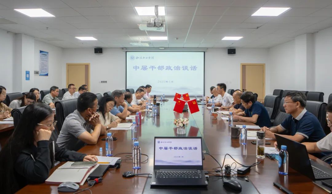 王德平对中层干部进行了政治谈话。他充分肯定了本学期全体中层干部的工作成效,指出大家立足岗位、履职尽责,为学校改革发展作出了积极贡献。针对下一阶段工作,王德平提出两点要求:一是要持续强化政治引领,把学习贯彻习近平新时代中国特色社会主义思想作为首要政治任务,引导广大师生在思想上政治上行动上同以习近平同志为核心的党中央保持高度一致,确保党的教育方针和重大决策部署在学校不折不扣贯彻落实;二是要深入推进改革创新,聚焦内涵式发展,在人才培养、专业建设、治理体系等方面持续发力,以创新思维破解发展难题,推动学校办学质量和办学水平实现新提升。
