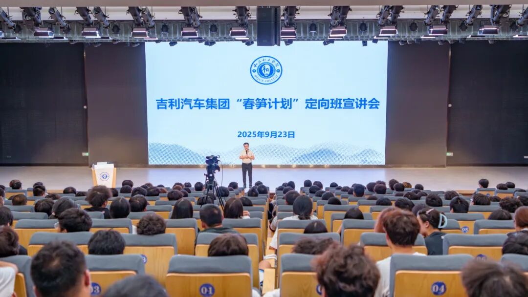 9月23日,吉利汽车集团区域经理高涵应邀来校,在大学礼堂为电子信息产业学院400余名学生作“春笋计划”定向班专场宣讲。宣讲会现场座无虚席,气氛热烈,互动踊跃,充分展现了同学们对未来职业发展的高度关注与积极期待。
