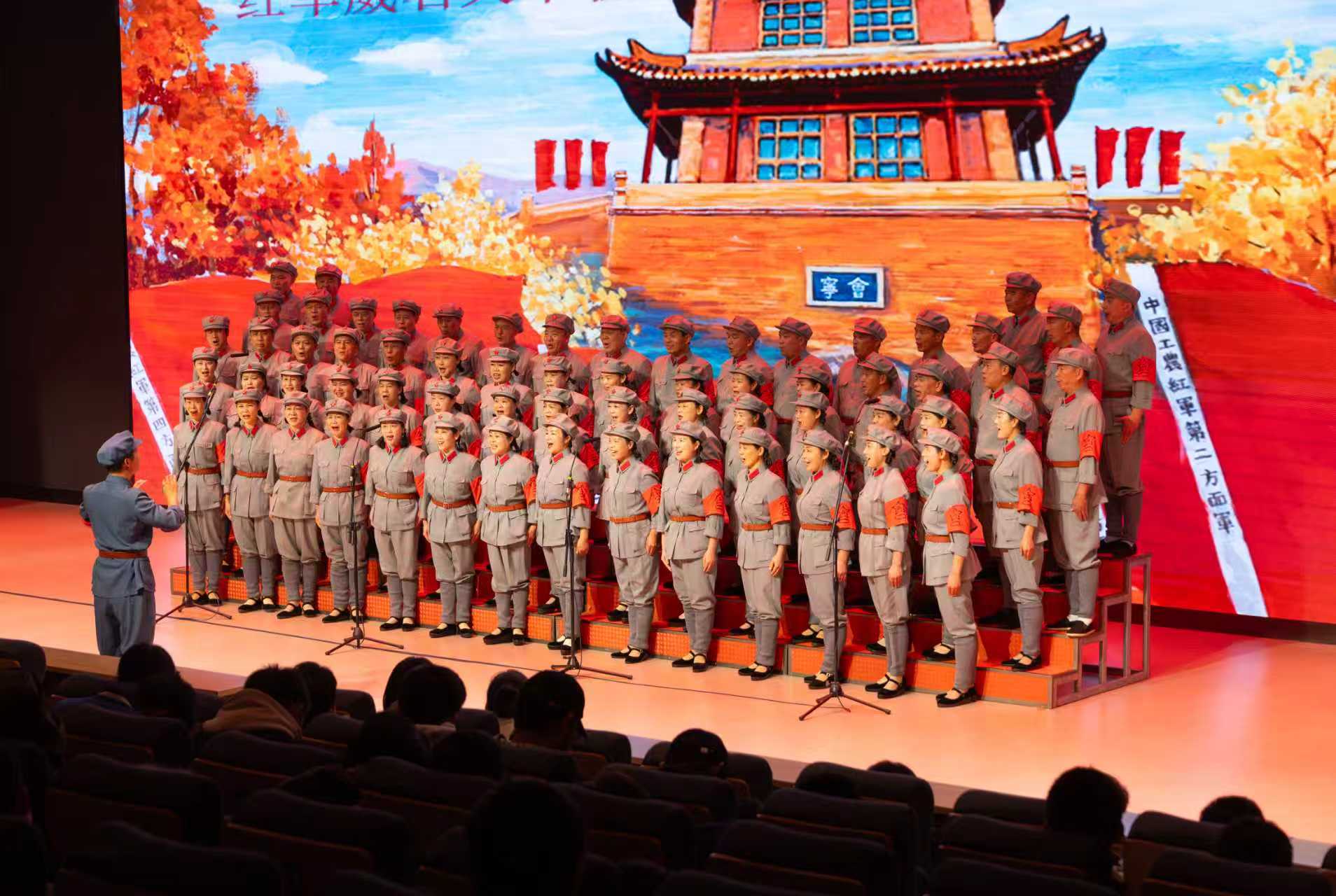 演出在经久不息的掌声中步入尾声。当庄严而熟悉的旋律响起,全体师生肃然起立,与台上演员齐声高唱《没有共产党就没有新中国》,激昂的歌声,既是对长征历史的深刻回应,也是对党领导下所取得的辉煌成就的深情礼赞。