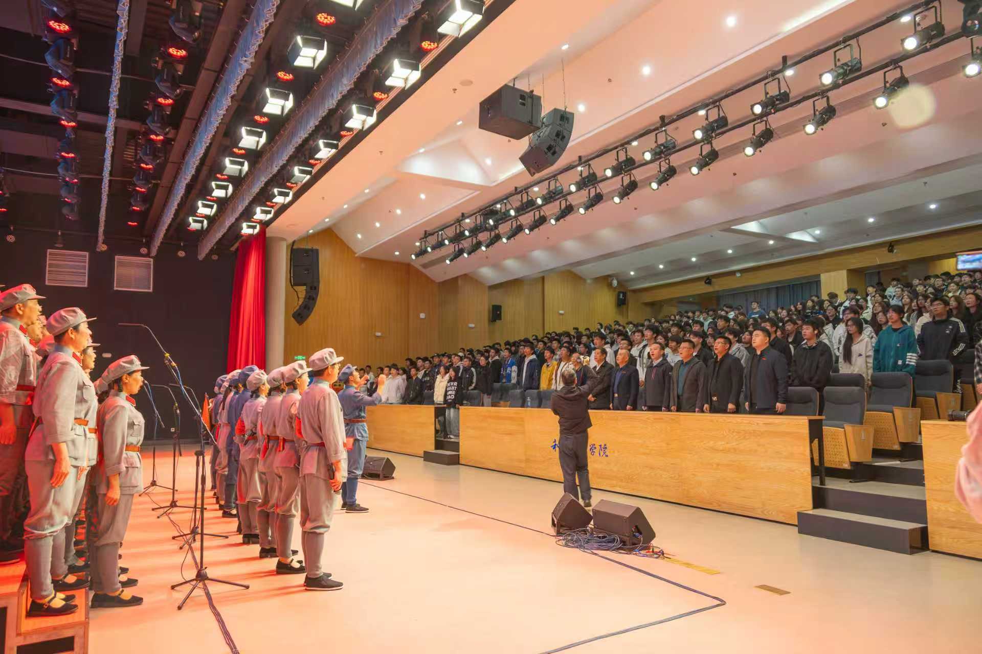 11月13日,江西于都长征源合唱团携情景音舞史诗《长征组歌》公益巡演走进和君职业学院,以朗诵、合唱、快板、情景再现等多元艺术形式,为师生构建了一部立体而鲜活的长征史诗。党委书记王德平、校长赖章盛、副校长王宗庆,党委委员刘冬春、韩晓军出席,与2025级全体新生分两批次共同观看了这场艺术与思想交融的红色经典演出。