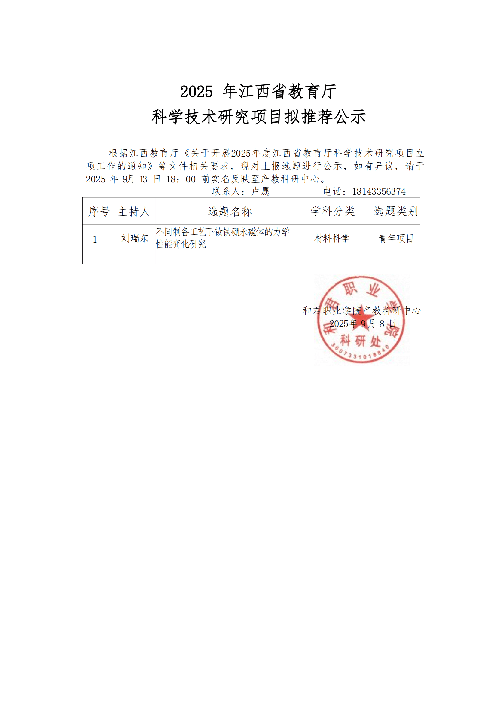 2025年江西省教育厅科学技术研究项目拟推荐公示